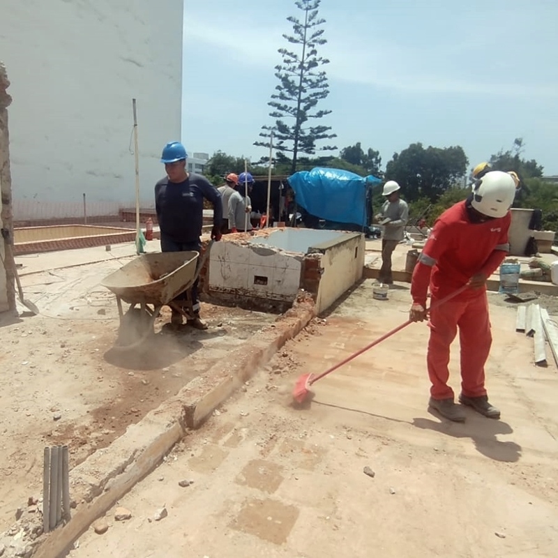 Para el proyecto de Casa Amarilla Angamos, recibimos el encargo de realizar la demolición y posterior resane de estructuras menores en el techo del local. Además, instalamos una nueva puerta metálica para el acceso al techo. Completamos la labor en el tiempo acordado y sin contratiempos.