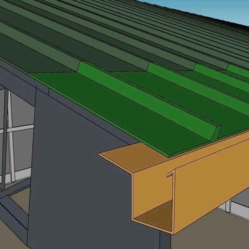 Para nuestro cliente EQUIMAG, realizamos el diseño e implementación de un nuevo sistema de drenaje pluvial. Dada la necesidad de un mantenimiento más frecuente en las canaletas existentes por la arena de la zona, optamos por instalar un sistema con aluzinc TR4. Con esto, aumentamos la sección del canal y logramos una mejor protección contra la arena.
